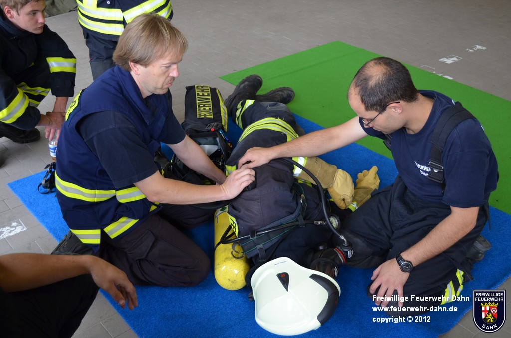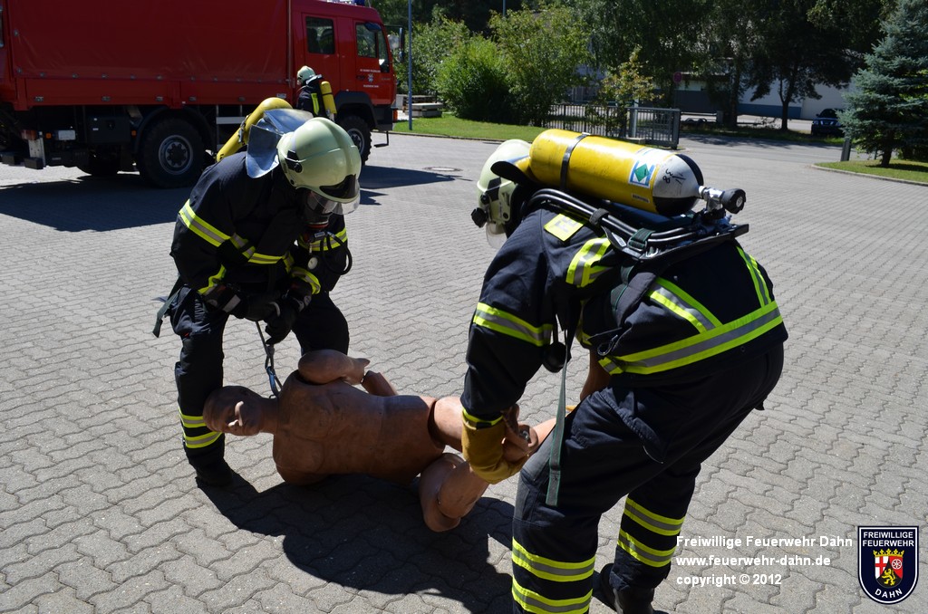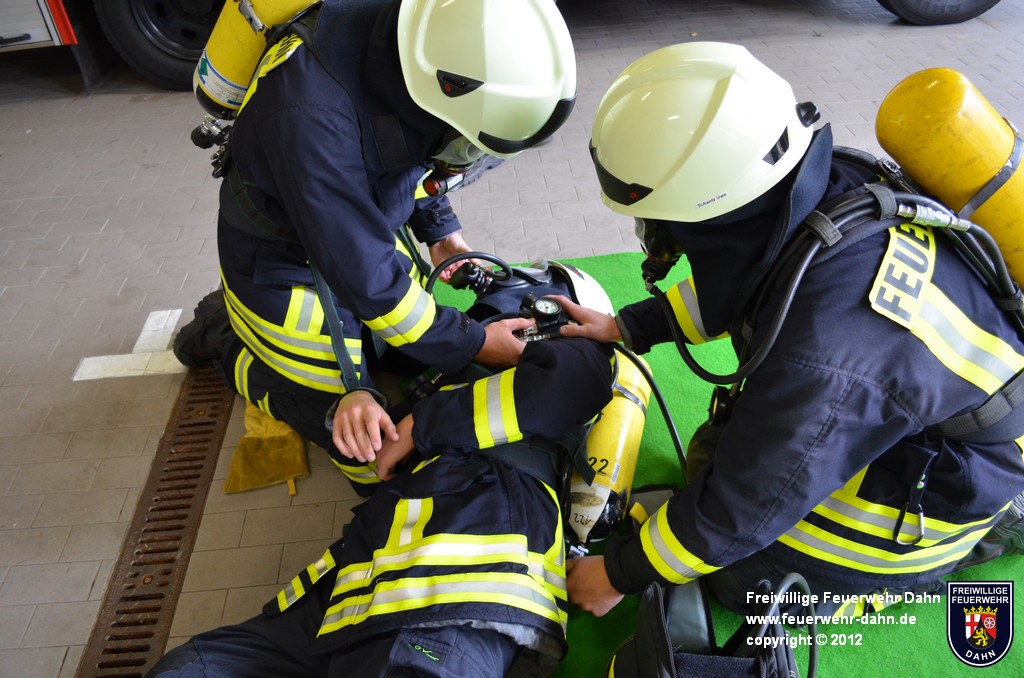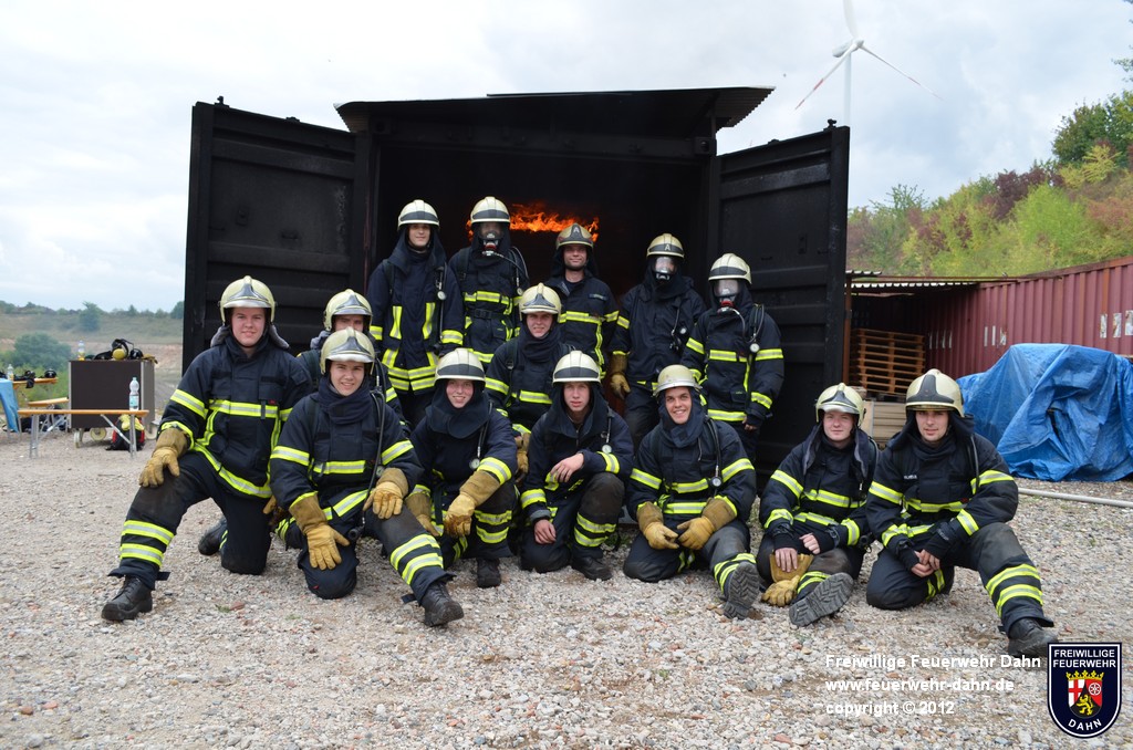 Seit Samstag, den 22.09.2012, stehen den Feuerwehren Dahn, Erfweiler, Busenberg, Niederschlettenbach, Fischbach und Ludwigswinkel in der VG Dahner Felsenland insgesamt 16 neu ausgebildete Atemschutzgeräteträger zur Verfügung. Die 16 Lehrgangsteilnehmer wurden in den letzten fünf Wochen in mehr als 45 Unterrichtstunden auf ihre Tätigkeit als Atemschutzgeräteträger vorbereitet.