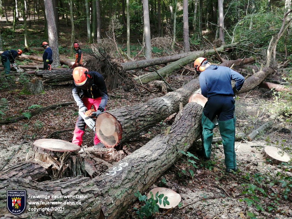 Die Sturm- und Starkwetterereignisse in den vergangenen Jahren haben die Freiwilligen Feuerwehren zunehmend gefordert und aufgezeigt, dass für den Einsatz bei Unwetterlagen Fortbildungsbedarf besteht. Ausgebildet wurde Fachtheorie zum Gerät, Schnitttechniken sowie Unfallverhütungs- und Sicherheitsvorschriften. Der Schwerpunkt lag allerdings auf der praktischen Ausbildung mit der Motorsäge, unter anderem an einem Baumbiegesimulator. Mit diesem Gerät kann unter Spannung stehendes Holz simuliert werden, wie es bei Stürmen häufig vorkommt, z.B. durch Windwurf. Dies stellt eine potenzielle Gefahr für den Motorsägenführer dar und muss bei der Schnitttechnik beachtet werden.