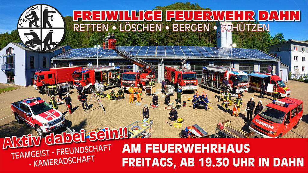 Die Mannschaft der Freiwilligen Feuerwehr Dahn setzt sich zurzeit aus 59 aktiven Wehrleuten zusammen, davon 10 Frauen. Wer Mitglied in der Freiwilligen Feuerwehr Dahn werden will kann an jedem beliebigen Übungsabend Wache sowie Fahrzeuge anschauen. Dieser findet wöchentlich Freitags ab 19:30 Uhr statt.