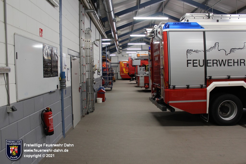 In der Fahrzeughalle hat jedes Einsatzfahrzeug seinen fest vorgesehen Stellplatz. Insgesamt stehen acht Stellplätze zur Verfügung. Jeder Stellplatz hat einen Stromanschluss, mit dem die Bordspannung...