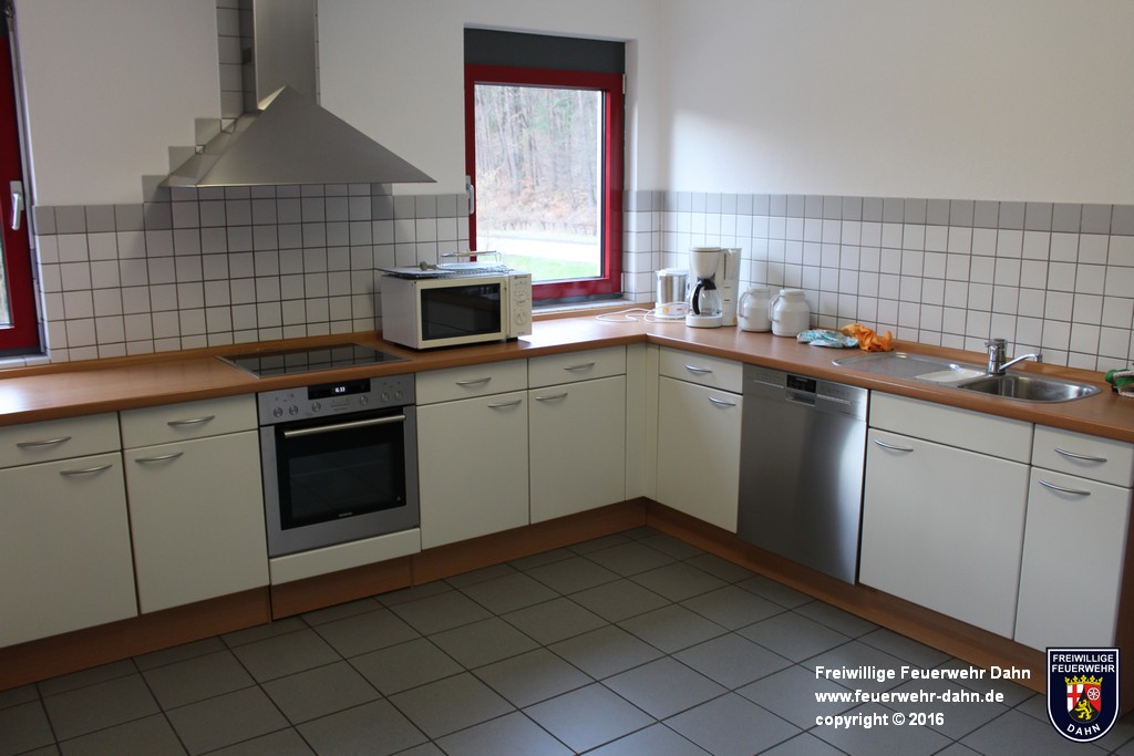 Auch für Mahlzeiten muss gesorgt werden. Das Feuerwehrhaus Dahn besitzt hierfür eine eigene Küche mit angrenzendem Vorratsraum. Mit der Küche können Feuerwehrleute während langen Einsätzen mit Nahrung versorgt werden. Vor allem in der Winterzeit mit heißen Suppen oder Kaffee.